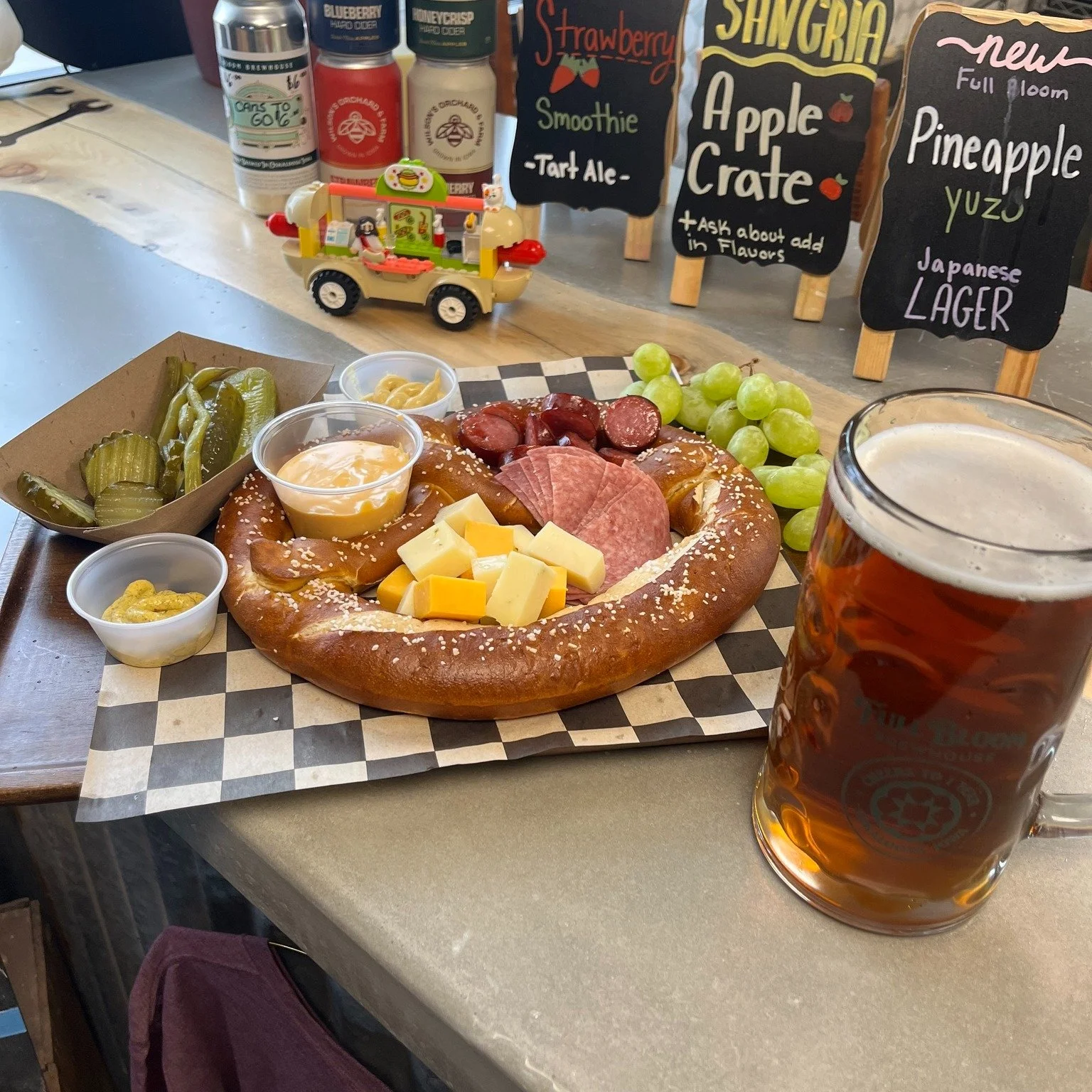 Massaive, freshly baked soft pretzel stuffed with and assortment of meats, cheese, creamy beer cheese, and tangy stone ground mustard.